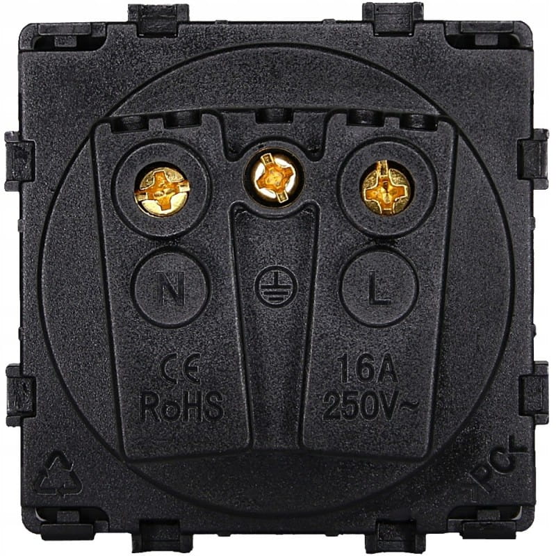 Przedmiotem oferty jest zestaw moduł gniazda pojedynczego wraz z ramką plastikową w kolorze czarnym - 1 szt.