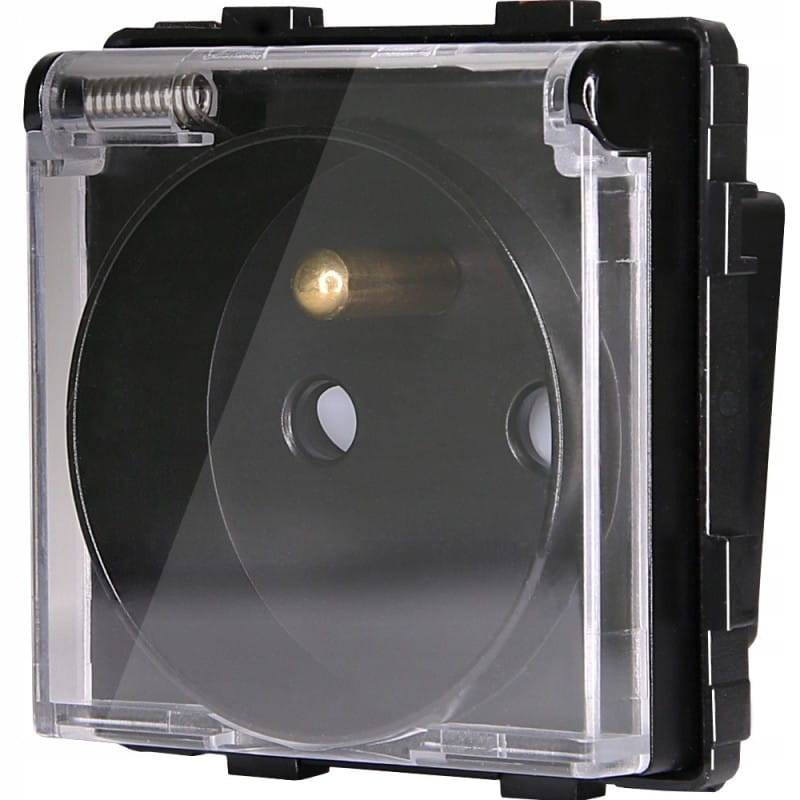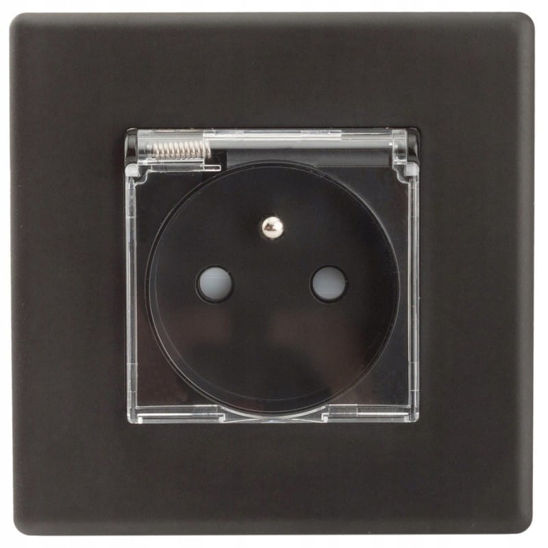 Gniazdo Gniazdko Czarne z Klapką z Bolcem Zestaw z Ramką PCV