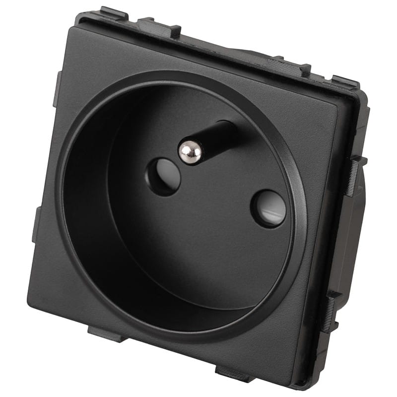 Przedmiotem oferty jest zestaw moduł gniazda pojedynczego wraz z ramką plastikową w kolorze czarnym - 1 szt.