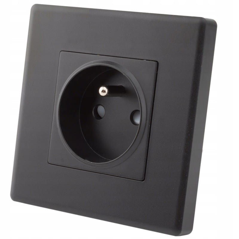 Gniazdo Gniazdko Czarne z Bolcem Uziemieniem Zestaw z Ramką PCV