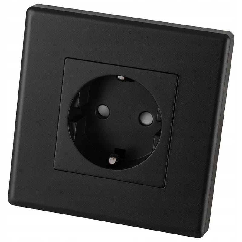 Gniazdko Czarne Schuko z Uziemieniem bez Bolca Zestaw z Ramką PCV