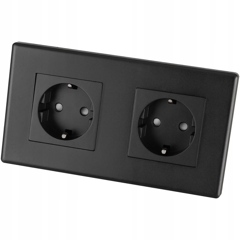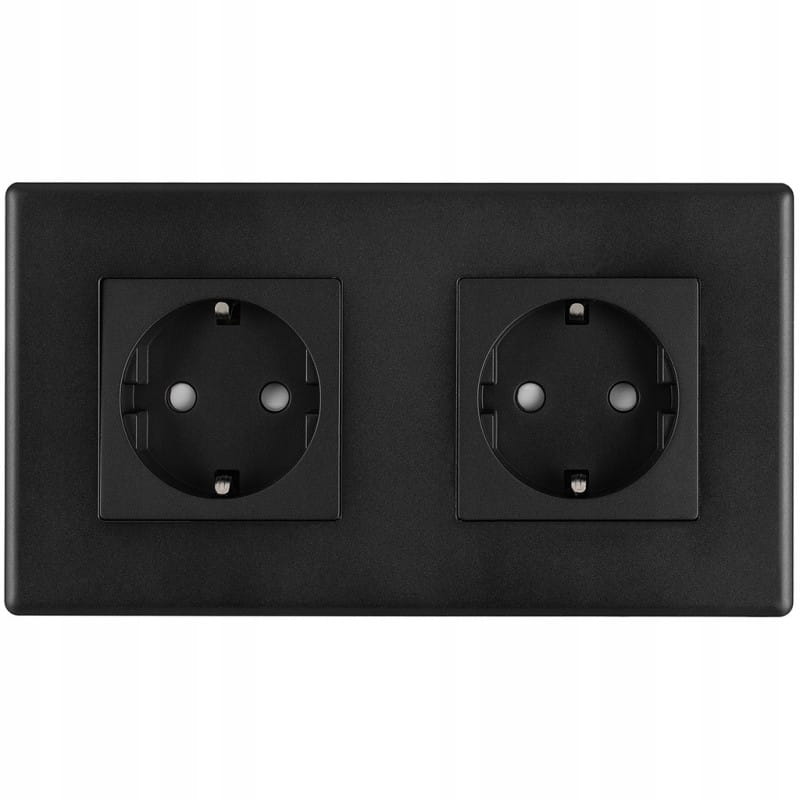 Gniazdo Podwójne Schuko Czarne Zestaw Ramka PCV Podwójna 2 x Gniazdko
