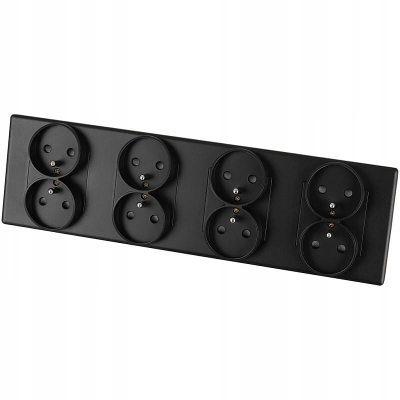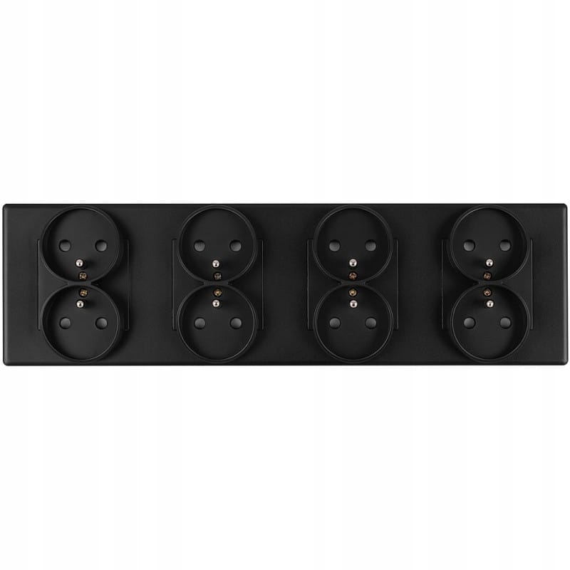 Gniazdo Poczwórne Czarne Zestaw Ramka PCV Poczwórna 4x Gniazdko