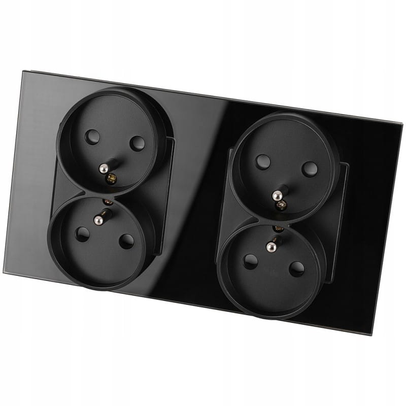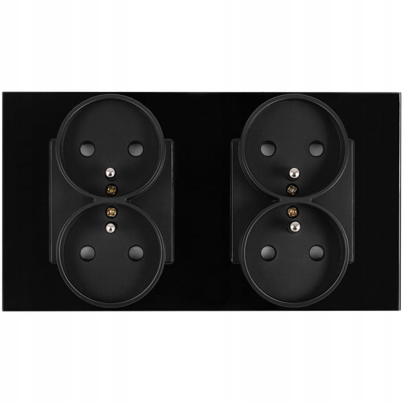 Gniazdo Podwójne Szklane Czarne Zestaw Ramka Podwójna i 2 x Gniazdko