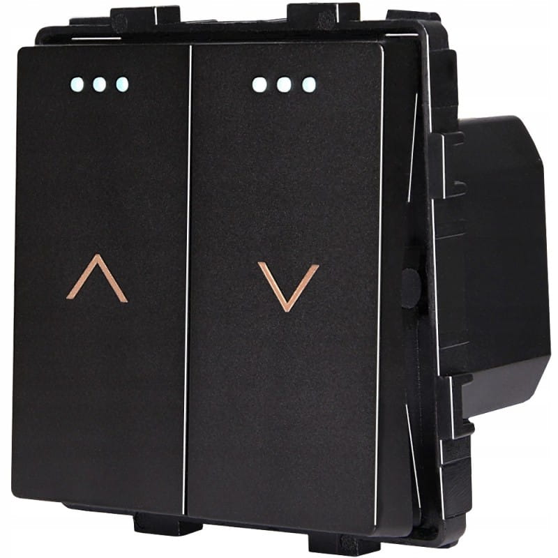 Przedmiotem oferty jest zestaw moduł włącznika żaluzjowego wraz z ramką plastikową w kolorze czarnym - 1 szt.