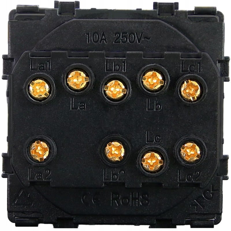 Przedmiotem oferty jest zestaw moduł włącznika potrójnego schodowego wraz z ramką plastikową w kolorze czarnym - 1 szt.