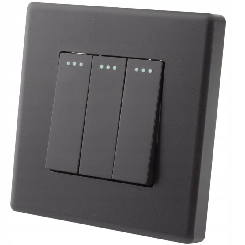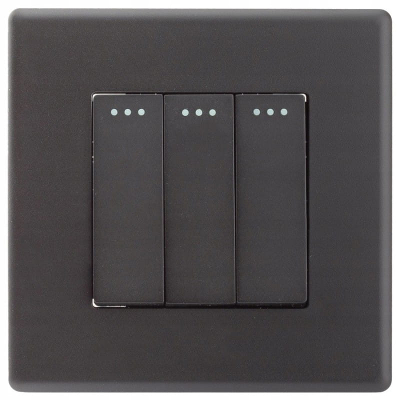 Włącznik Wyłącznik Potrójny Schodowy Czarny Zestaw z Ramką