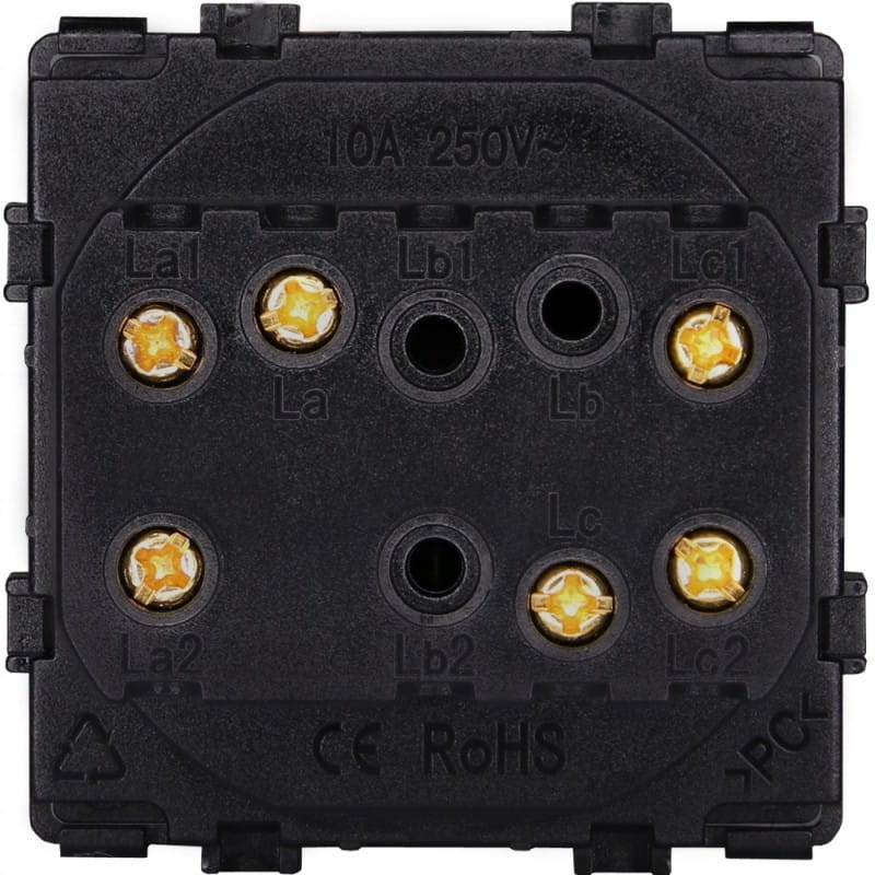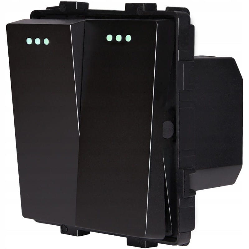Przedmiotem oferty jest zestaw moduł włącznika podwójnego schodowego wraz z ramką plastikową w kolorze czarnym - 1 szt.
