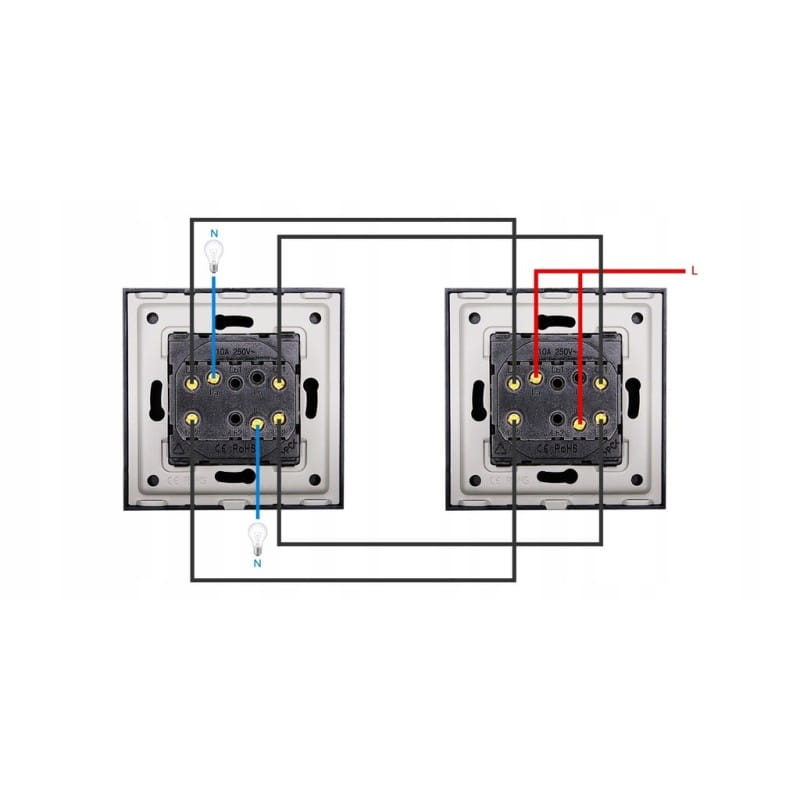 Włącznik Wyłącznik Podwójny Schodowy Czarny Zestaw z Ramką