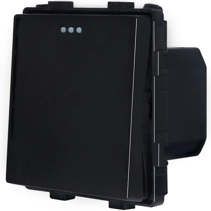 Przedmiotem oferty jest zestaw moduł włącznika pojedynczego krzyżowego wraz z ramką plastikową w kolorze czarnym - 1 szt.