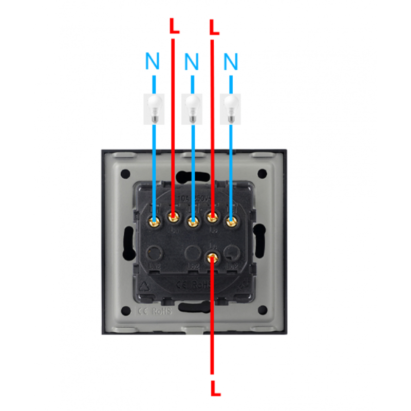 Włącznik Wyłącznik Światła Potrójny Szklany Czarny